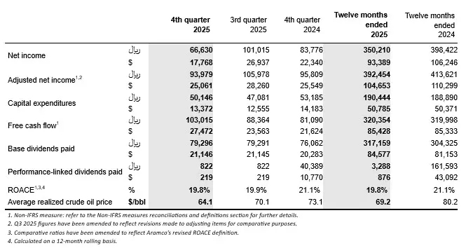 Aramco Announces Fourth Quarter And Full-Year 2025 Results